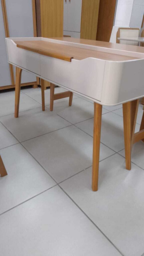 - Possui apenas um pequeno furinho no braço, discreto e que não compromete o uso nem a estrutura.